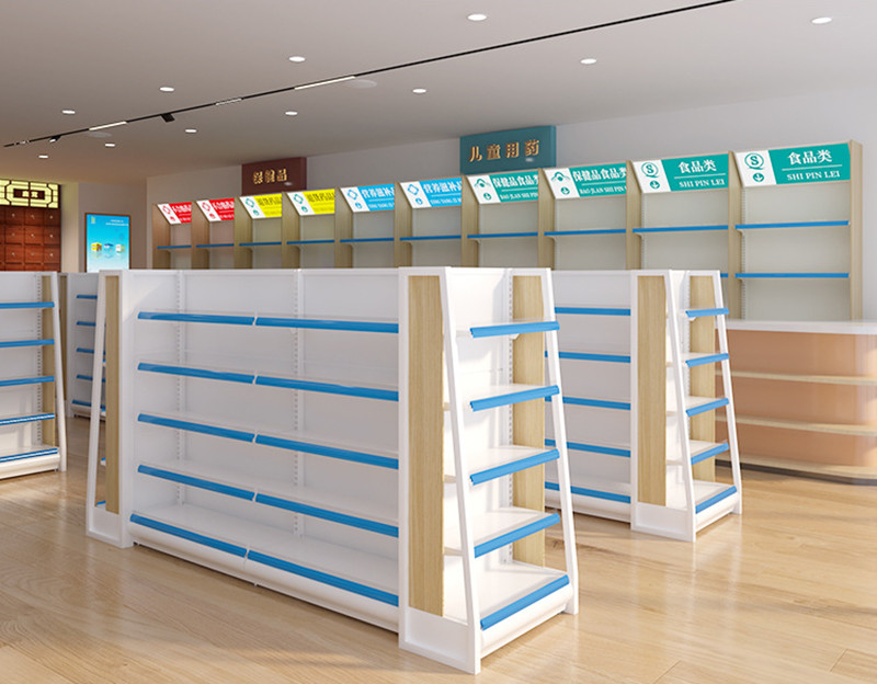 Uma exposição funcional da farmácia mantém sua mercadoria organizada e indicada corretamente. Uma opção é as unidades da gôndola, que podem guardar quase todo o artigo eficazmente.